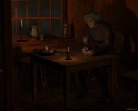Er ist im Winter nach Waldburg gekommen und wollte sich dann dort - aus der puren Neugierde eines alten, törichten Mannes heraus - von dem Schmied, der scheinbar seine Tochter lehrte ein Schwert schmieden lassen, damit er es im Frühjahr mit weiter in den Norden nehmen kann. Durch ein Versehen ist Letha'man stutzig geworden und schließlich kam es zum Wiedersehen von Vater und Tochter.