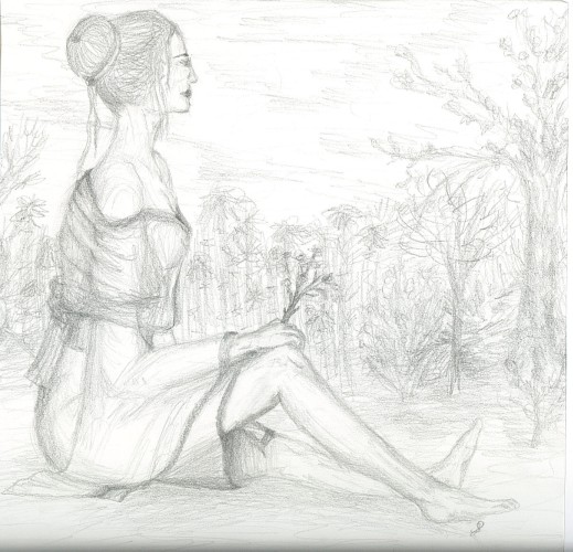 Eine sitzende Frau
